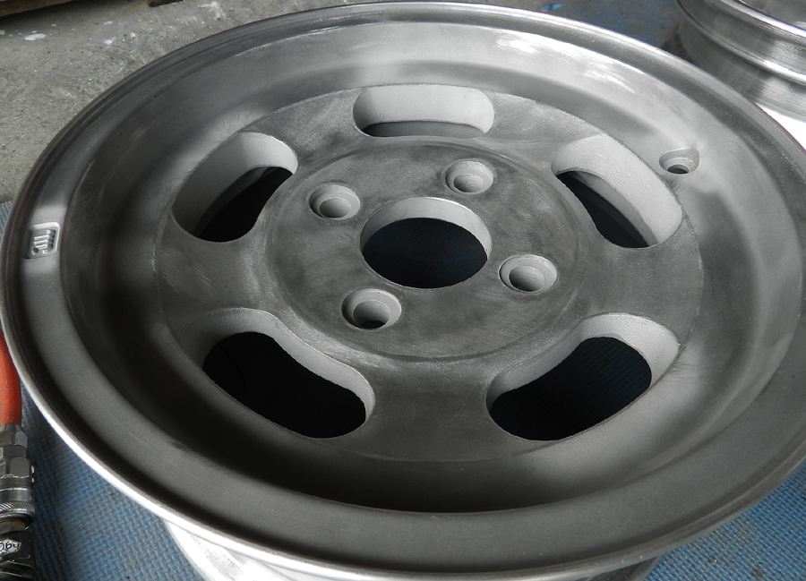 曲り修理してからスポークサイド面縦壁や文字部のブラスト研磨