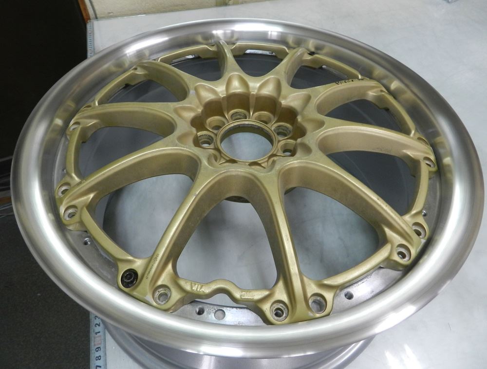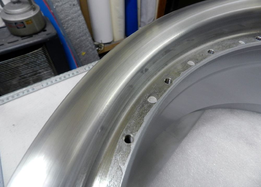 アウトリムの研磨は元ディスクでは根本よりの研磨出来ませんので他のディスクを組んで見えない箇所リム根本よりパウダーシルバーを剥ぎながら研磨します。