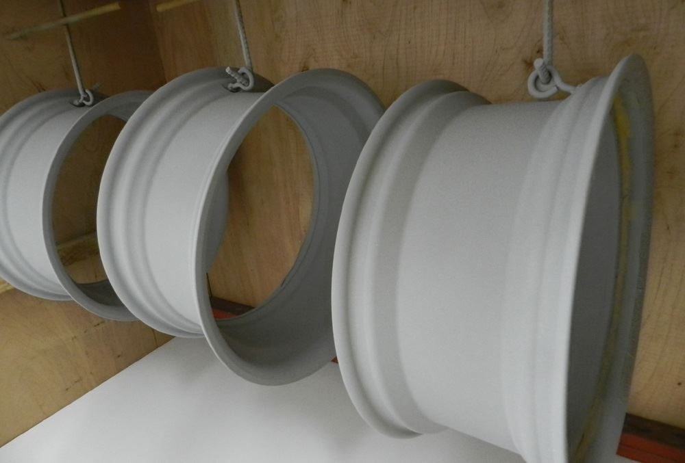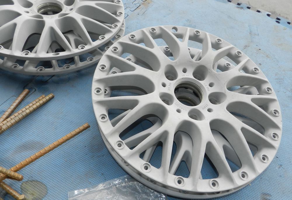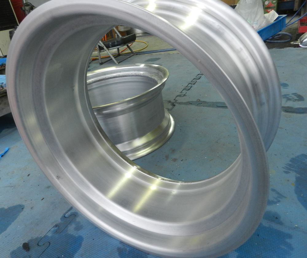 インナーリムの腐食を研磨削除してパウダーコートの下処理します。