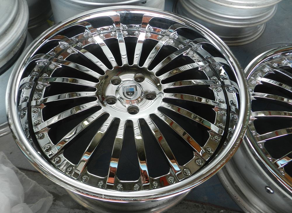 岡山県のお客様・・・クローム腐食の無い程度良好なアメ鍛i-Forged18&19インチ3Psです。ガリ傷修理ついでにクロームから模様替えのパウダーコートします。