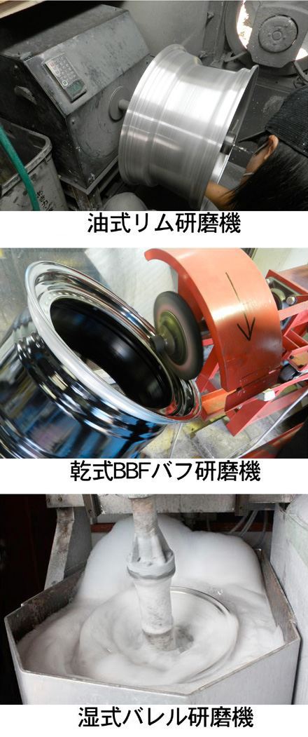 リムバレル研磨までの「リム研磨~BBFバフポリッシュ~バレル研磨」アウトリム研磨