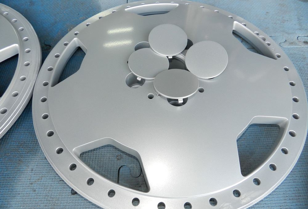 パウダーシルバーをベースとして溶剤のシルバーメタで仕上げ塗装してディスク塗装の完成