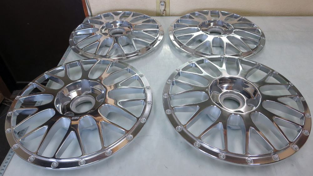 BBS-LM19インチのインリム割れ修理からアウトリムバレル研磨オンクリアーとディスクは3次元研磨からのブラックポリッシュです。