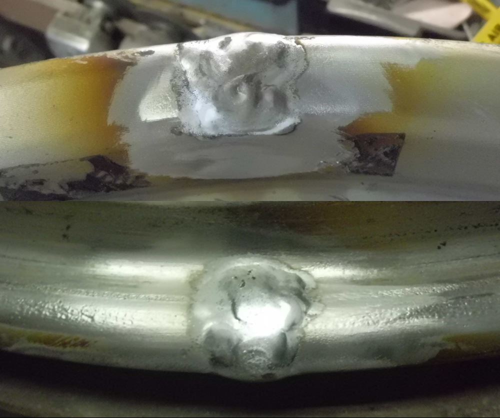 良く目にする適当なクラック修理!強度維持のためらしくそれらしい理由で不細工な溶接団子残して有りますが何ら意味は有りません。