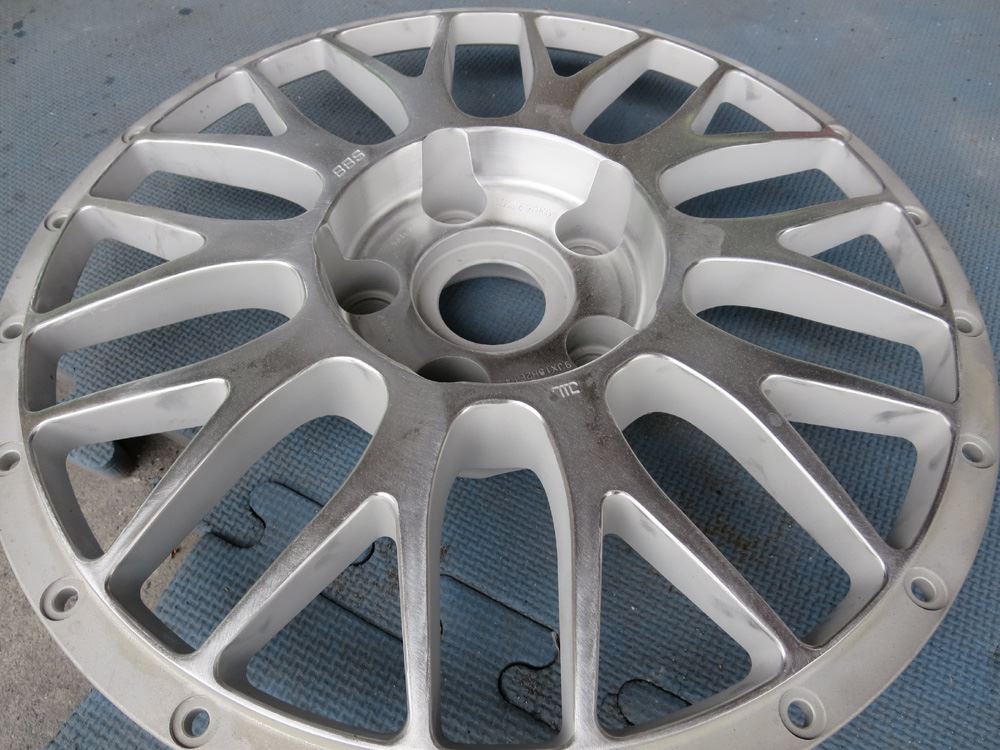 インリムは塗装無しとの事ですが、インリムの汚れが酷いといくら表が綺麗になっても見た目バランスが悪いですのでインリムは剥離研磨だけして無垢の状態にします。
