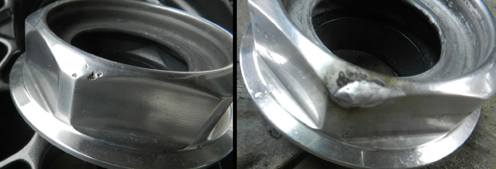 肉盛研磨形成を要す修理で溶接痕を気にされない方はアルマイトもお受けしますが、溶接痕が気になる方はBBFバフポリッシュ仕上げになります。