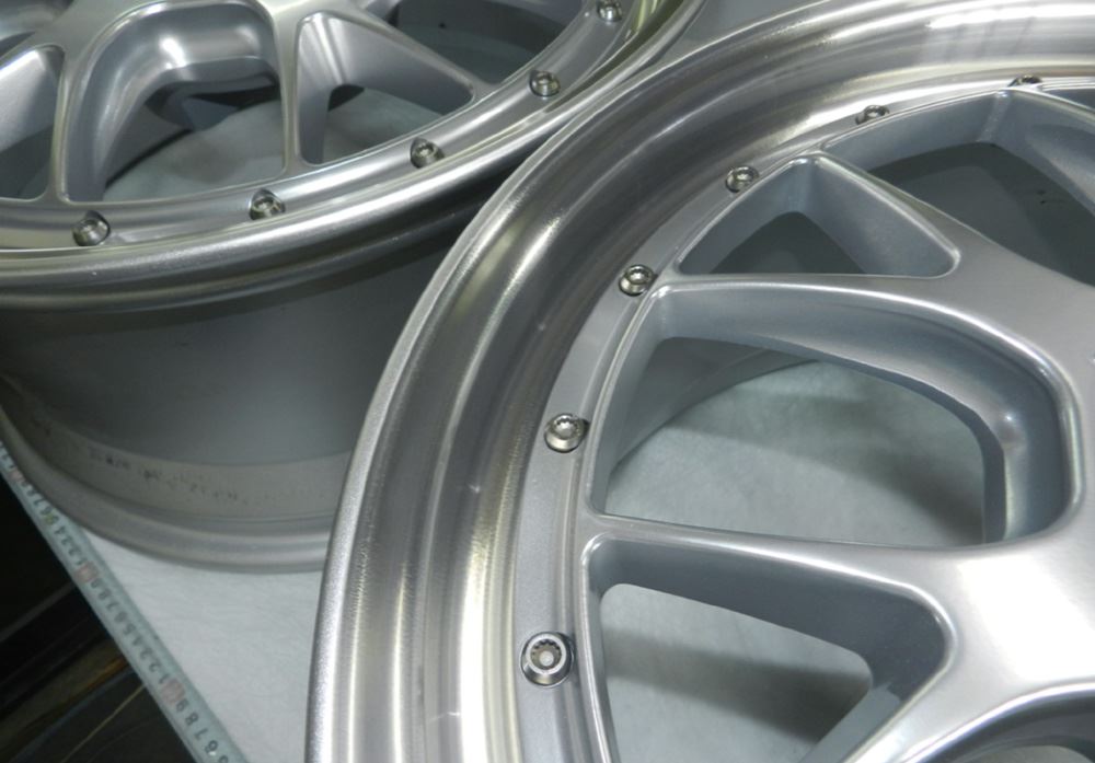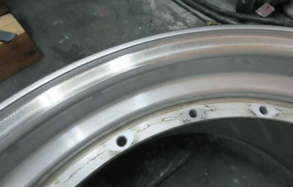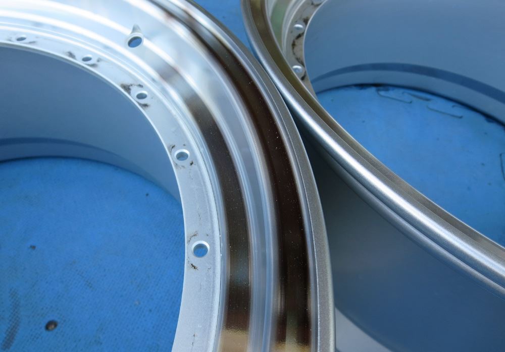 リムフランジ修理研磨してシルバー塗装からクリアー塗装まで一旦完成させます。
