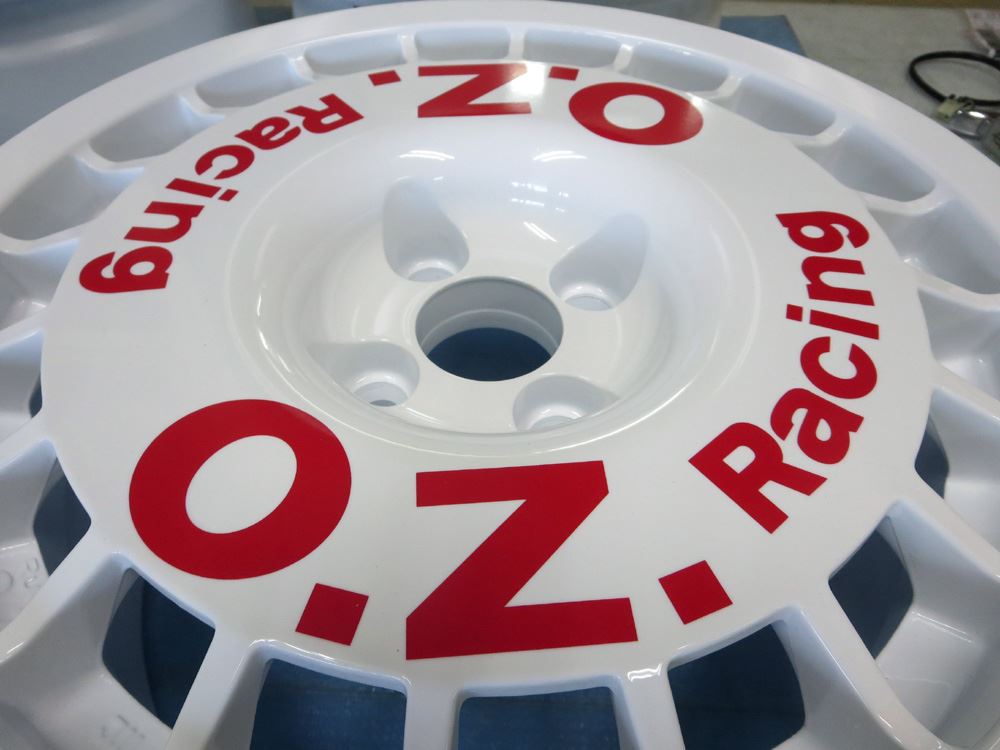 OZホイールの曲り、ガリ傷修理から溶剤カラー&ロゴシール作成
