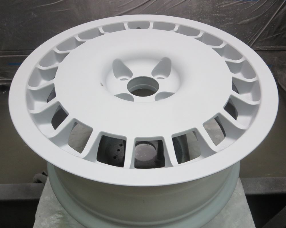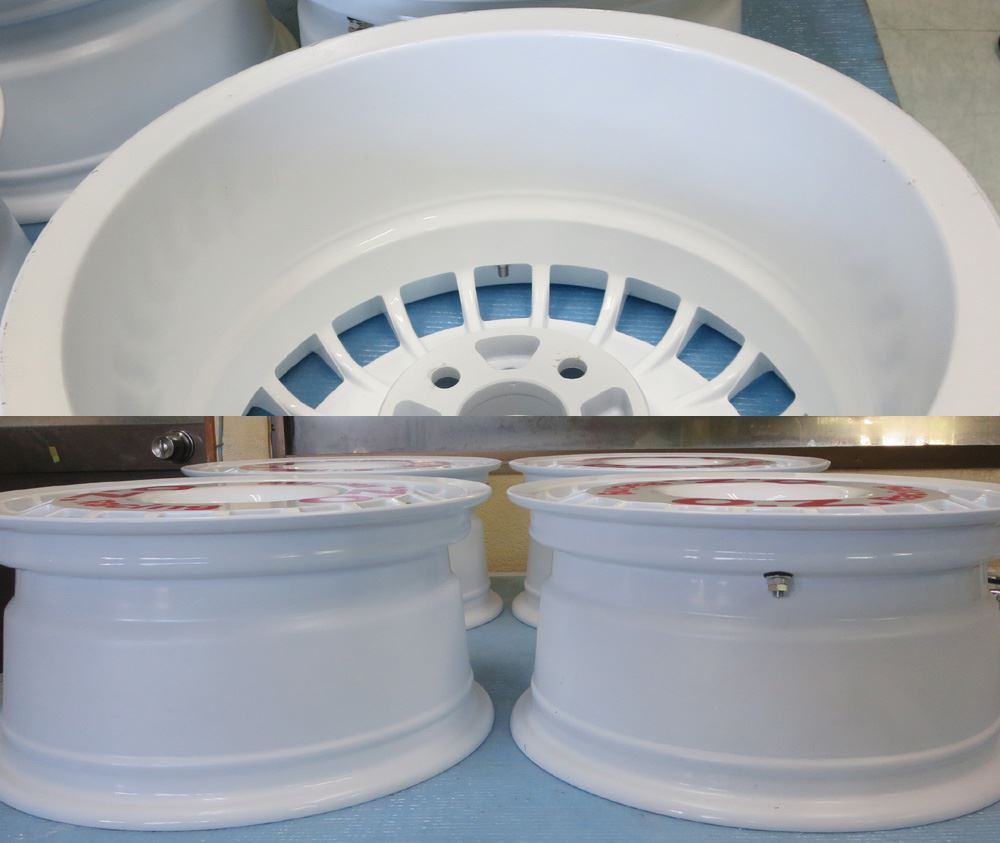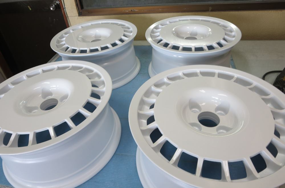 OZホイールの曲り、ガリ傷修理から車のボディーカラー同質の焼き付け溶剤カラー仕上げです。