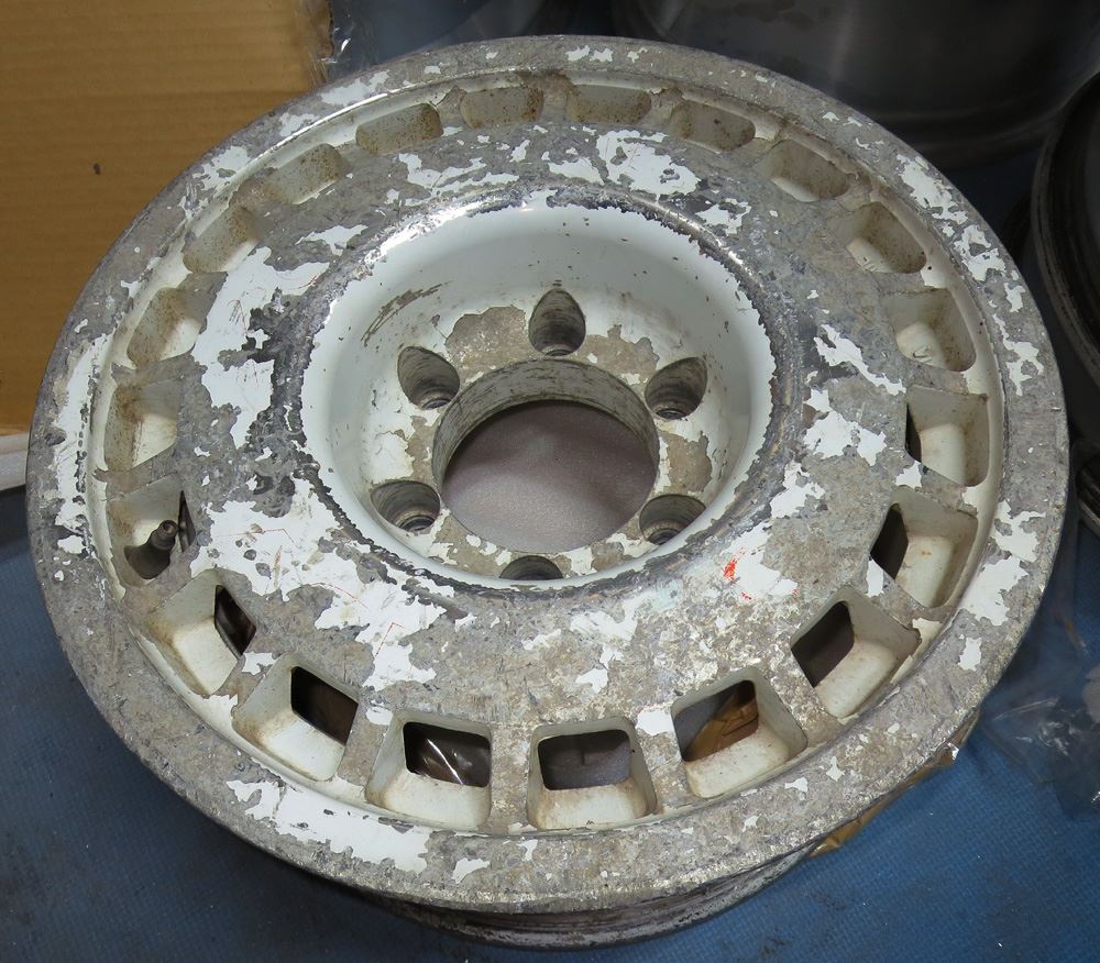 大分県のお客様・・・リフレッシュのやりがいのあるホイールです。ガリ傷だらけでかなり傷んでいますが、変な修復歴さえなければ見た目の損傷など全く関係有りません。