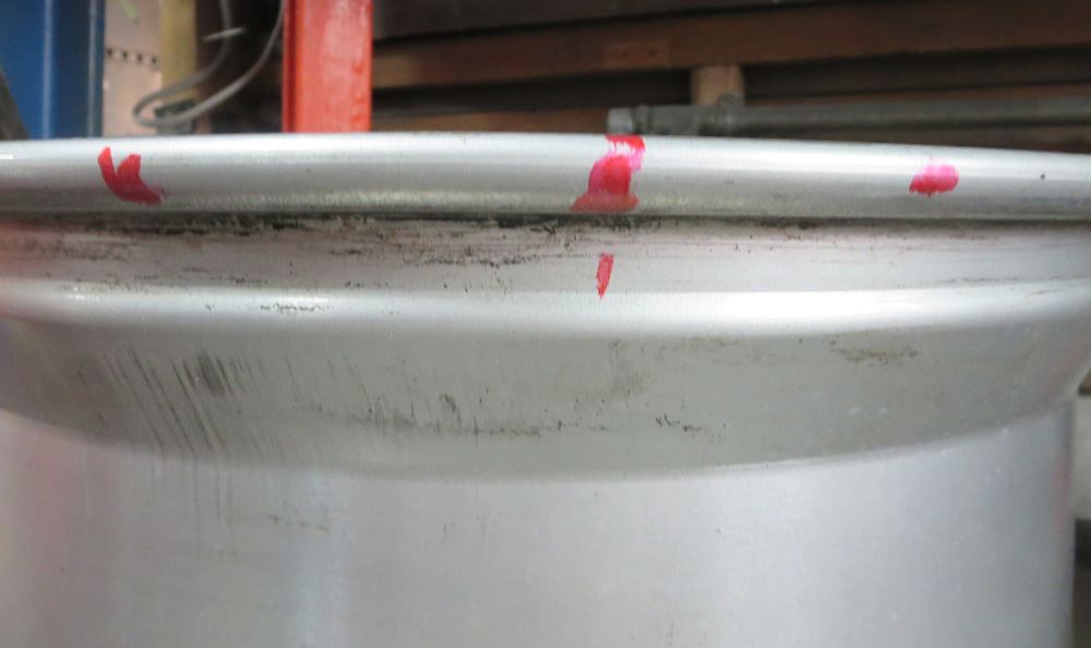 ガリ傷の肉盛溶接・・リム端への削り込み修理やパテ埋め修理など一切行っていません。