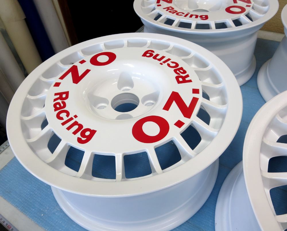 OZホイールの曲り、ガリ傷修理からの溶剤カラー&ロゴシール作成