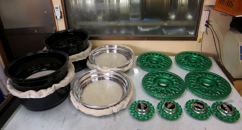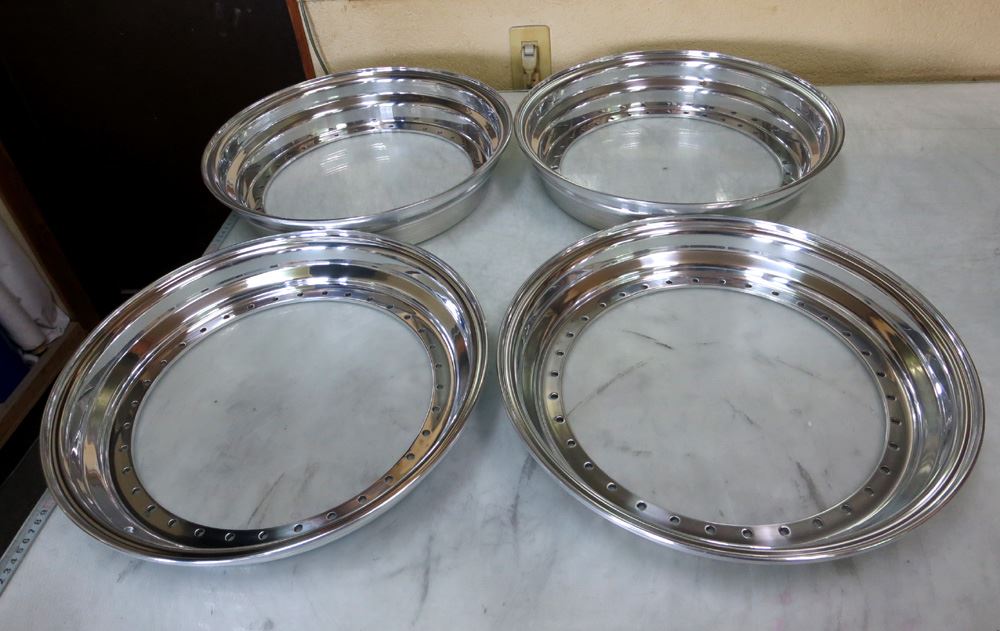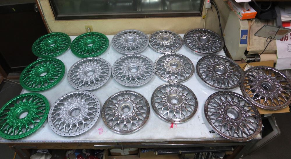 ※15~17インチまでのレギュラーサイズのリムは多数ストックしていますので、「修復暦有りのリムや曲り、割れ、腐食」のひどいモノは在庫がある限り、リム交換、ピアスボルト交換、キャップ交換して修理、リフレッシュいたしますので安心してご依頼ください。