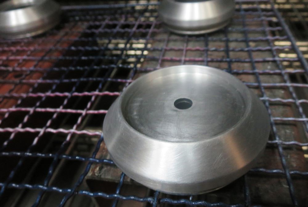 ハンド磨きとバレル仕上げ研摩の繰り返しでペーパー痕や磨きムラが消え光沢が出ればバレル研摩完成です。これよりパウダークリアーに入ります。