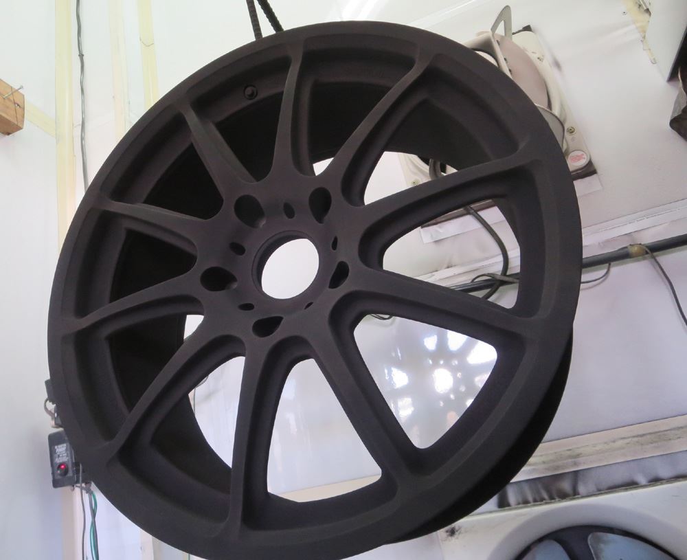 インナーリムへのパウダーグロスブラックの静電噴射!