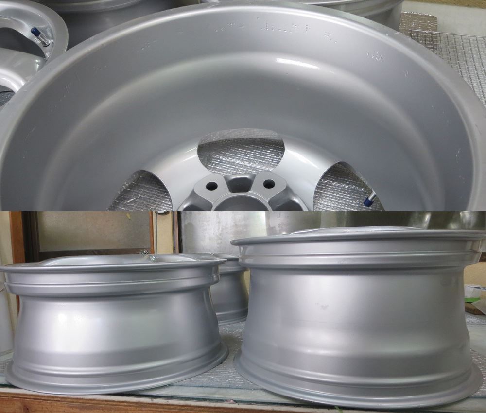 丸塗りのシルバーメタ仕上げは何て事無いように思えますが、マグホイールへの再塗装はアルミと違い剥離から下処理まで特殊で煩雑な作業になりますので納期と料金がそれなりにかかります。