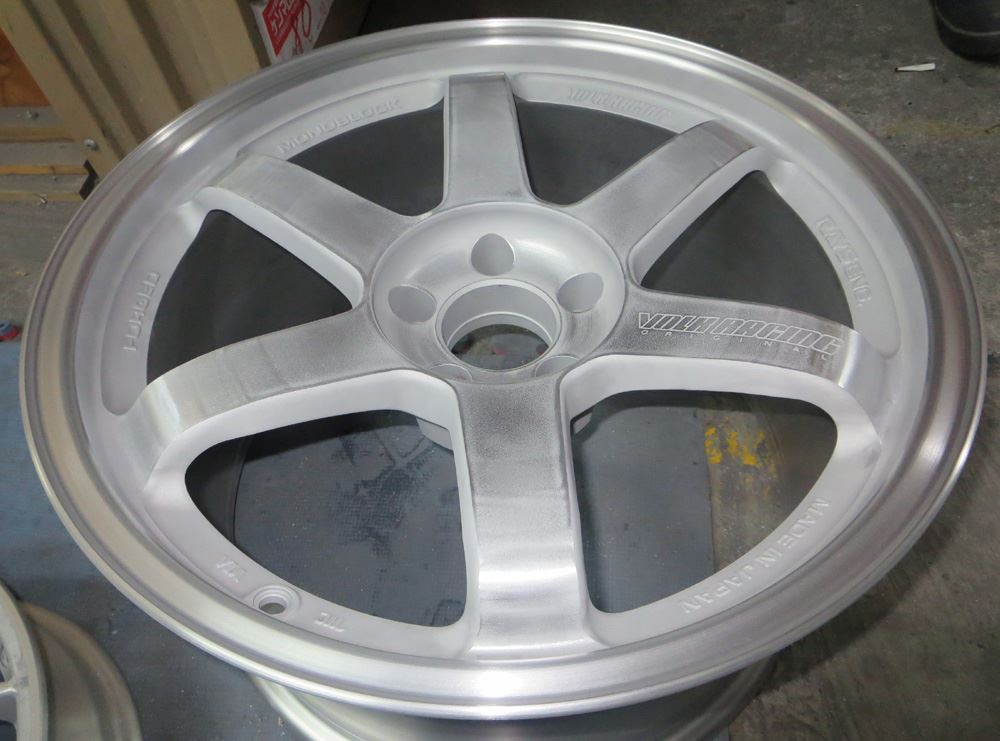 前回のDTMと同じ鍛造ホイールのため「素材が良い・軽くて取扱いが楽く・磨けば光る」と3拍子揃っているため作業は非常にやり易い商品ですがフルポリッシュホイールへはパテ埋めや削り込み修理などの誤魔化しが効きませんので修理技術腕の見せ所でも有ります。