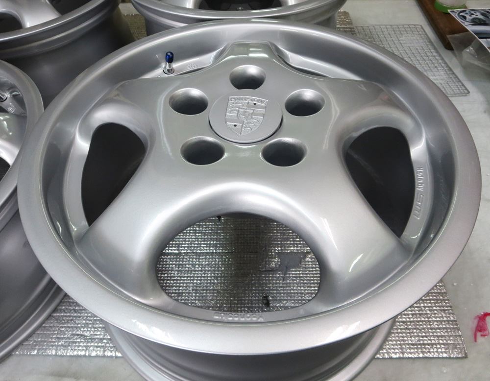ポルシェ純正マグホイールのパウダーコートベースによる再塗装