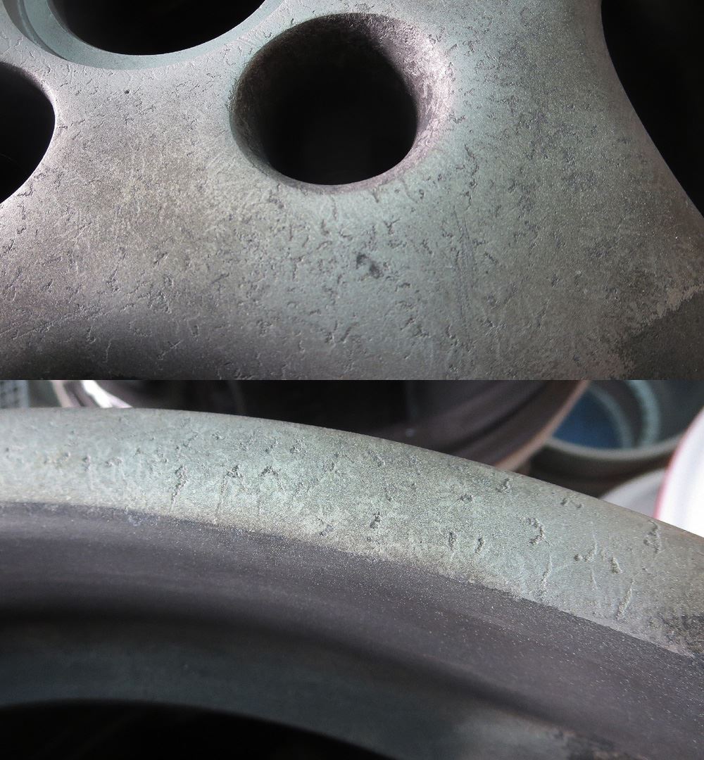 インナーリムの曲りや割れは使用に影響しますので全て治しますが、インナーリムのガリ傷に関してはリクエストに応じて肉盛り研磨形成して修理します。