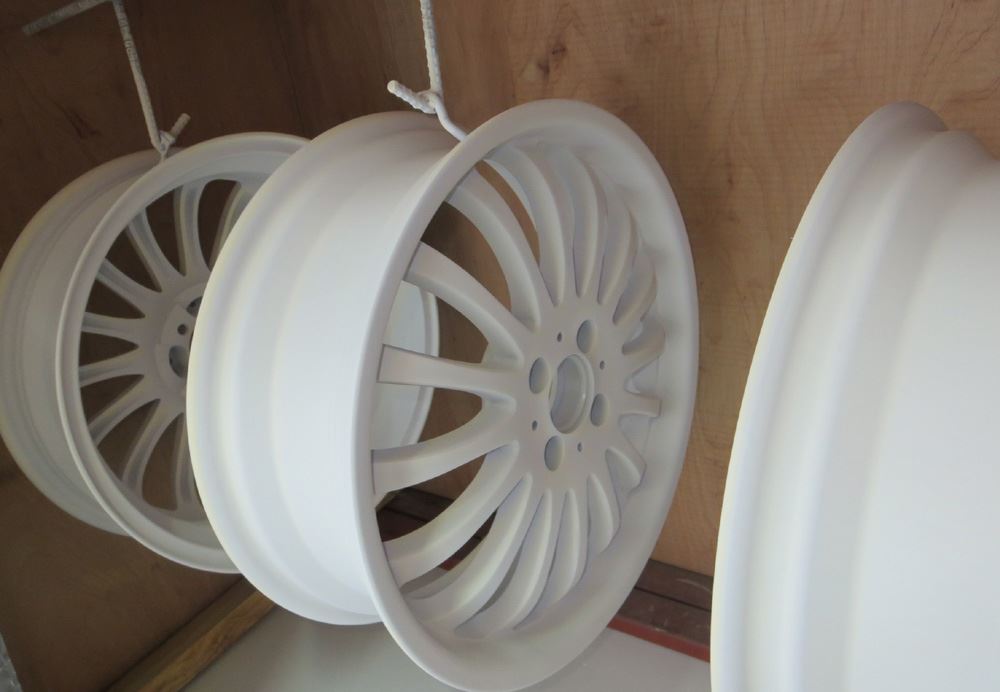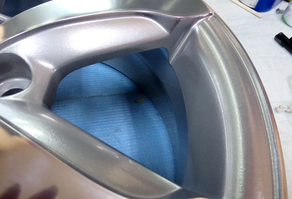 スポーク角部も潰し丸みを帯びた形状の上にさらにパウダークリアーで覆えば角張ったダイヤモンドカットの溶剤オンクリアーよりは数倍長持ちしますし次回のリペアー代はベースが出来上がっていますので再ダイヤモンドカットの半値以下で収まります。