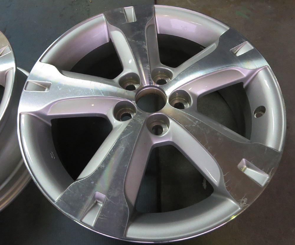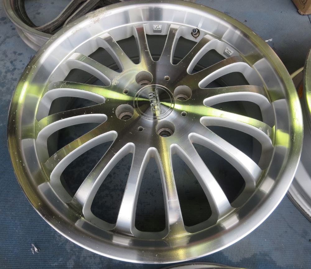 島根県のお客様・・・曲り、ガリ傷など有りませんがダイヤモンドカット特有の角部に白ミミズシミ有りです。白ミミズはアルミ素地とクリアーの間に侵入したモノですので上っ面を磨いたらクリアーが剥げて素地が出るだけです。・・