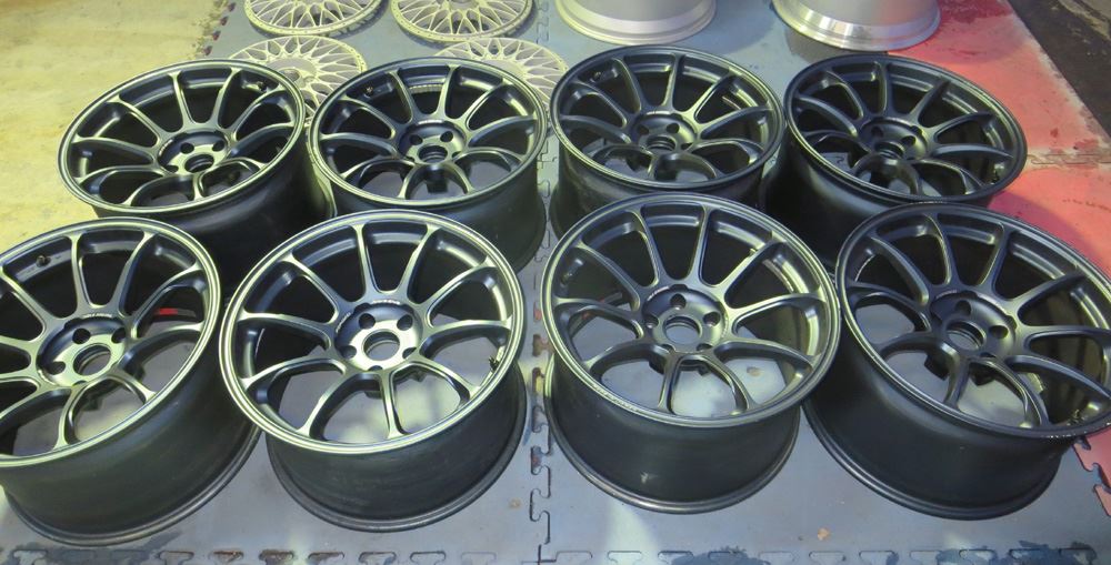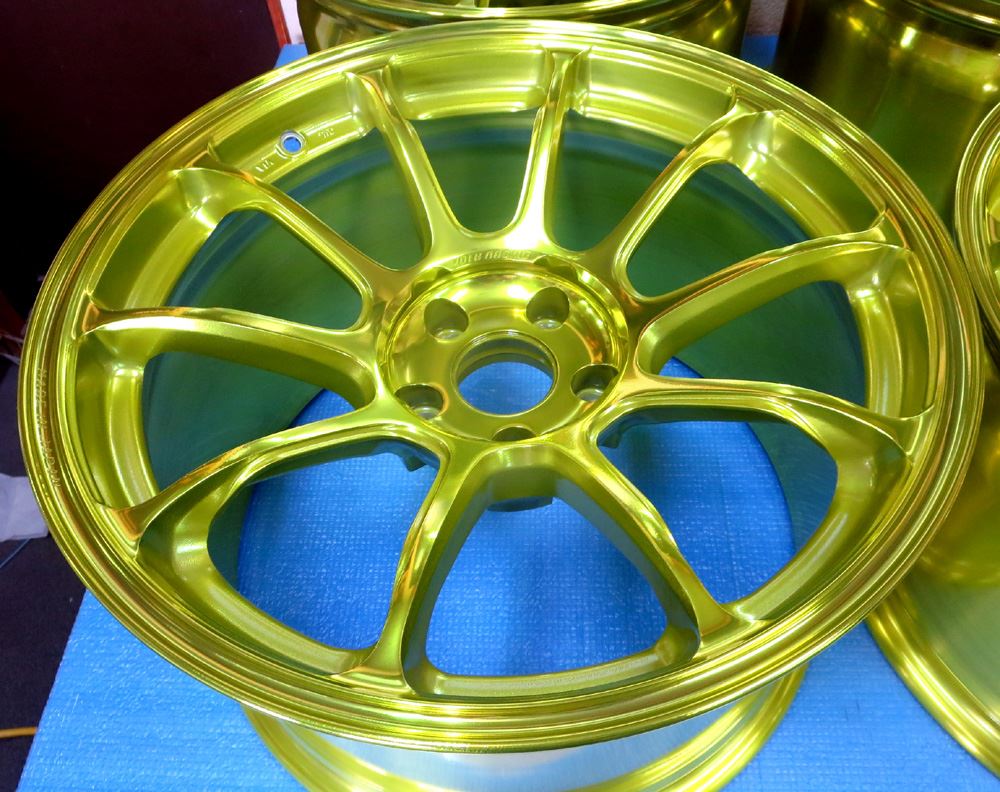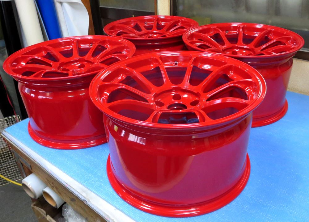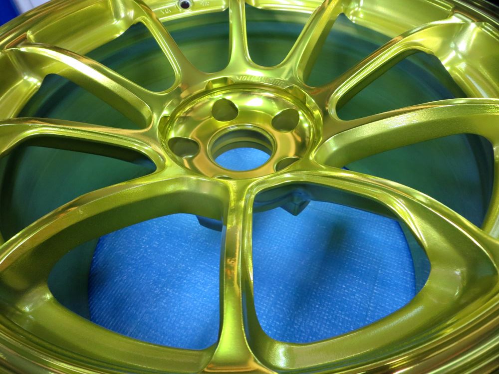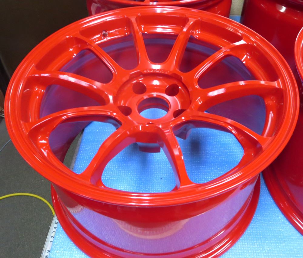 福岡県のお客様・・・新品同様の18インチVOLK/ZE40マットブルーガンメタ8本をパウダースーパーレッドとパウダーキャンディーイエローに塗り分けです。