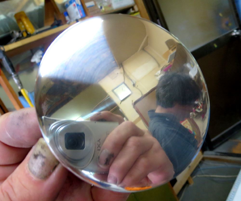 薄いアルミ板が破れない様に慎重に研磨しました。汚れた手とおっさんが写ってしまい申し訳ございません。