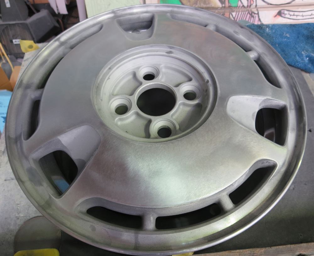 樹脂に缶ビールほどの薄いアルミ板を貼り付けて有るキャップですがこれが光らないとホイールとのバランスが悪くなるためまずはキャップ磨きを先にトライ!
