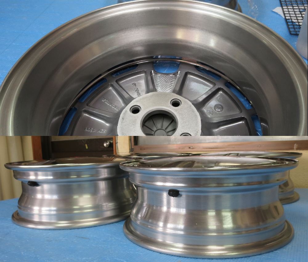 ホンダインサイト純正14インチのバレル2次元研摩から溶剤ブラッククリアーによるブラックスモークです。