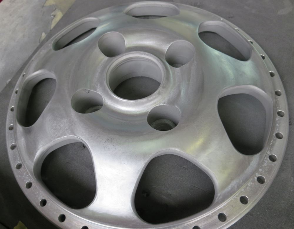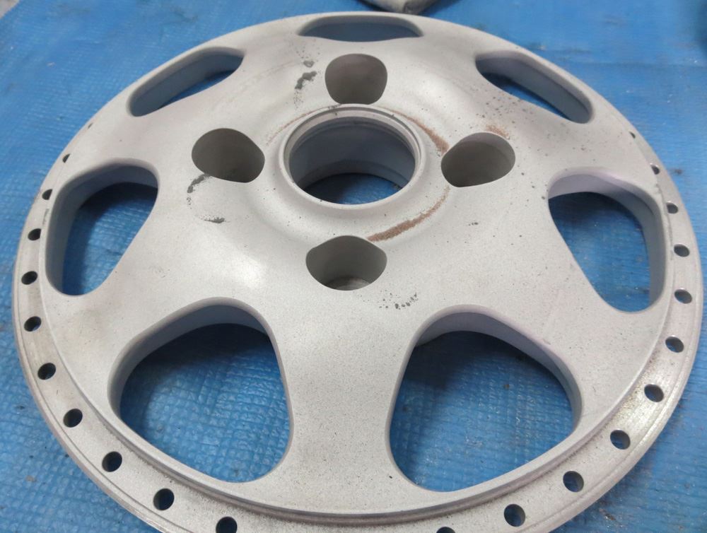 リム修理が終わればリムは個別施工でディスクの塗装剥離からブラスト研磨