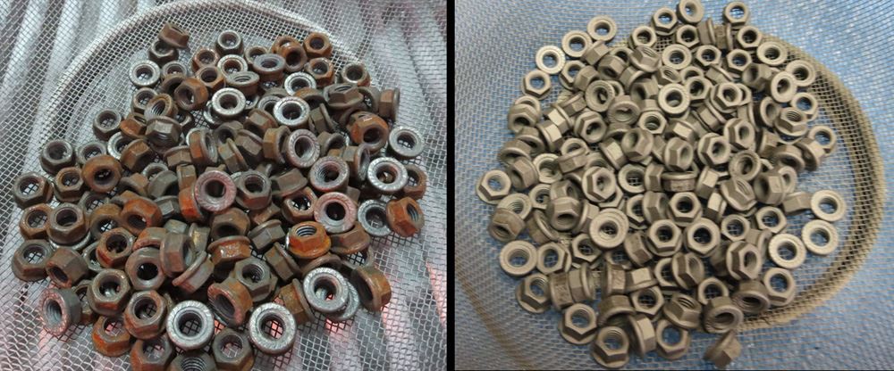 錆びたナットは錆び取りでブラスト研磨しましたが国産規格のM6、M8ナットなど1個数円ですので新品の方がいいのですが・・・
