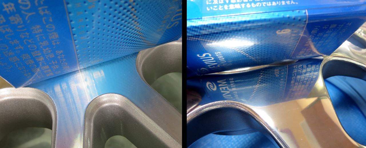 左ダイヤモンドカットと右バレル研摩での光沢映り込みの違い