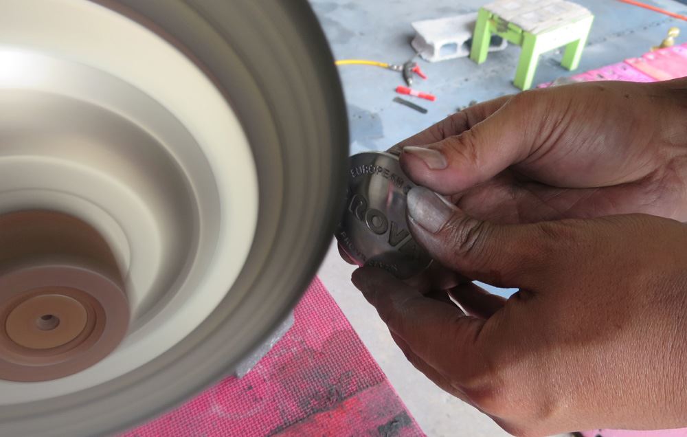 押し込みタイプのキャップはバレルでは無くバイクパーツを磨くトレース研磨で磨きます。