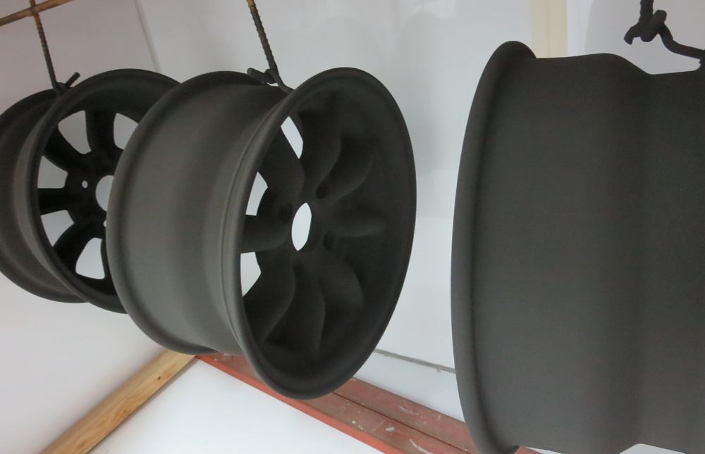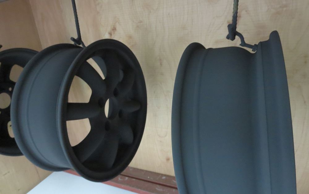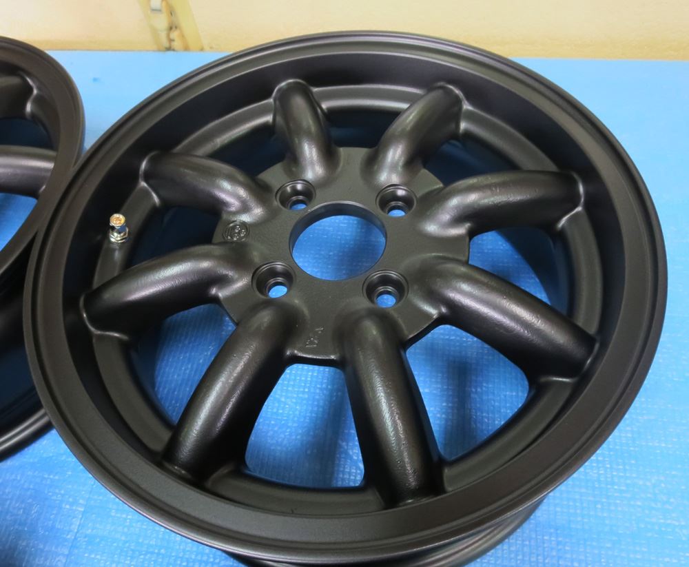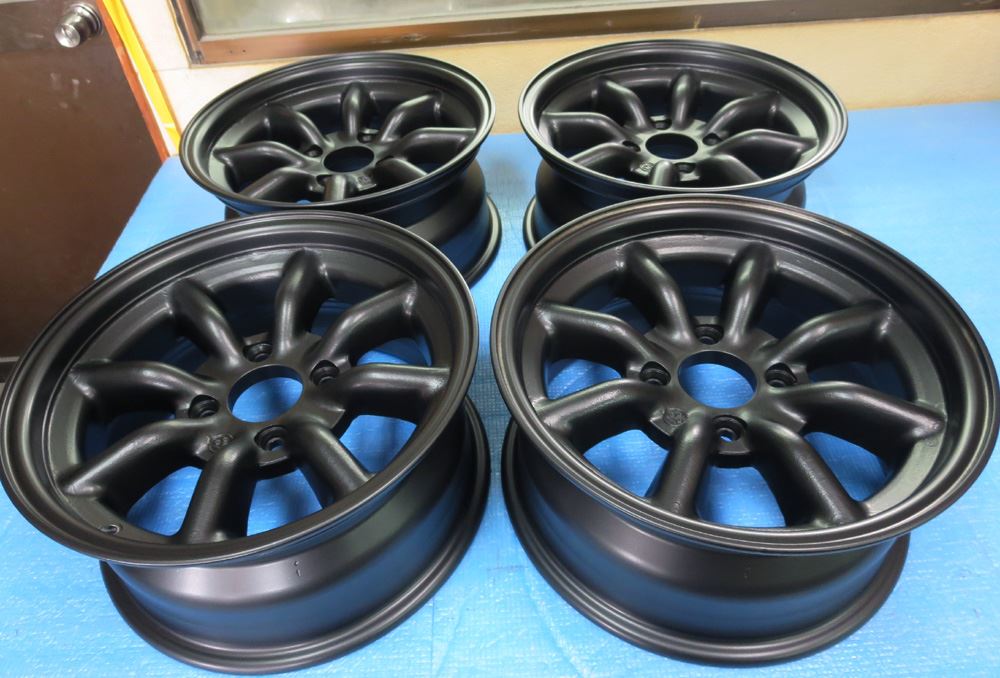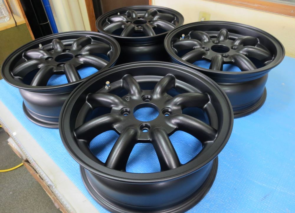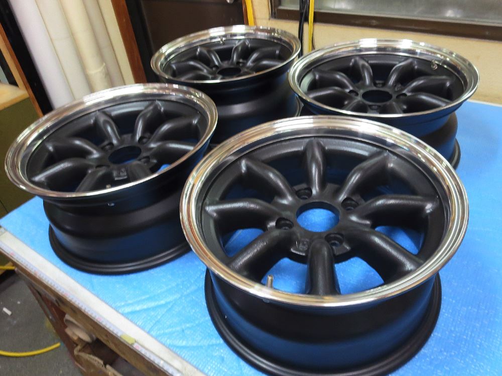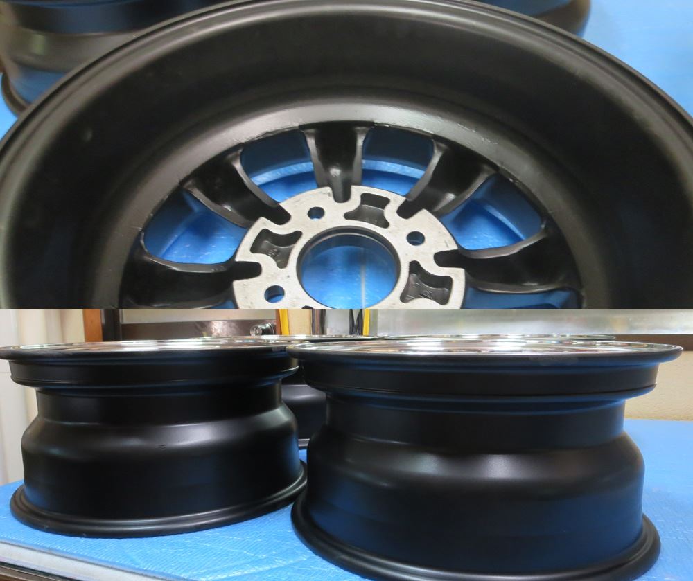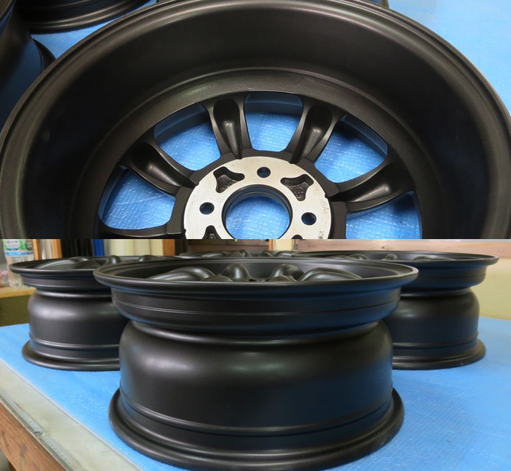 ワタナベ14&15インチパウダーマットブラック丸塗り&リムポリッシュ追加工