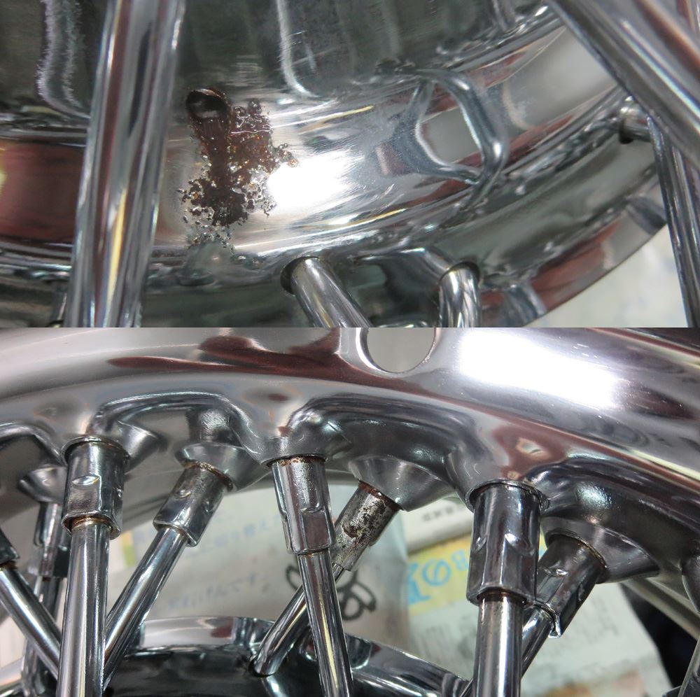 4本皆リムフランジガリ傷とポリッシュ部エグレ