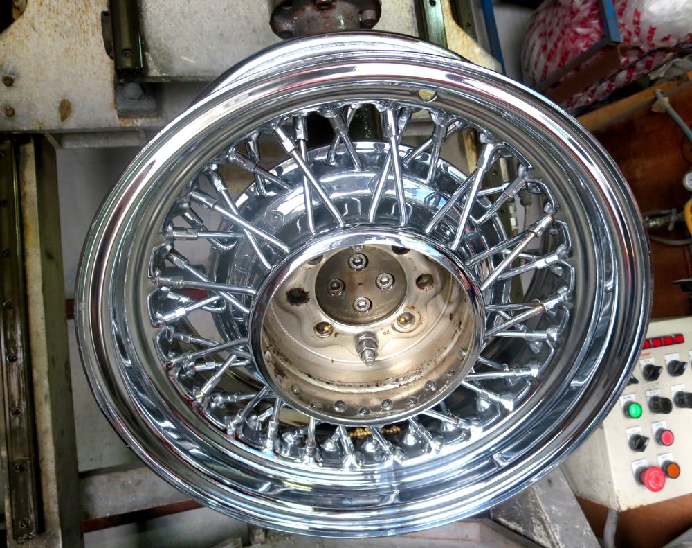 BBS純正の再クロームしたロングボルトを装着サンドイッチ式に組んで合体完成です。同規格品M7の社外ボルトも有りますが今回は拘りのBBS純正ロングボルトです。