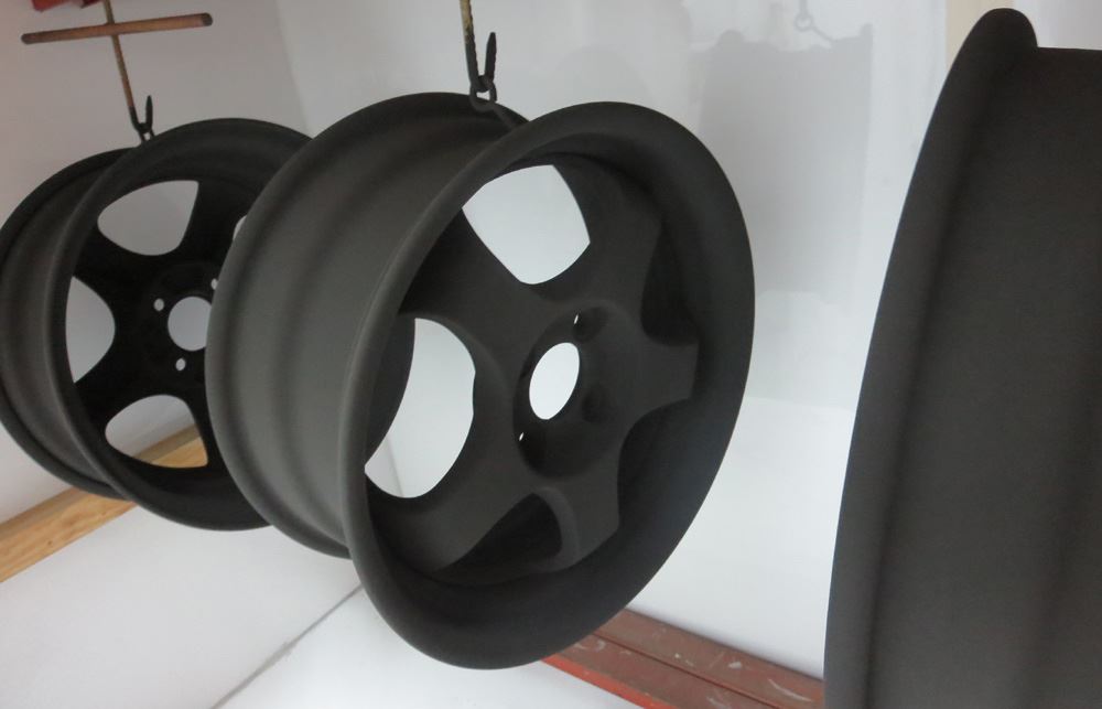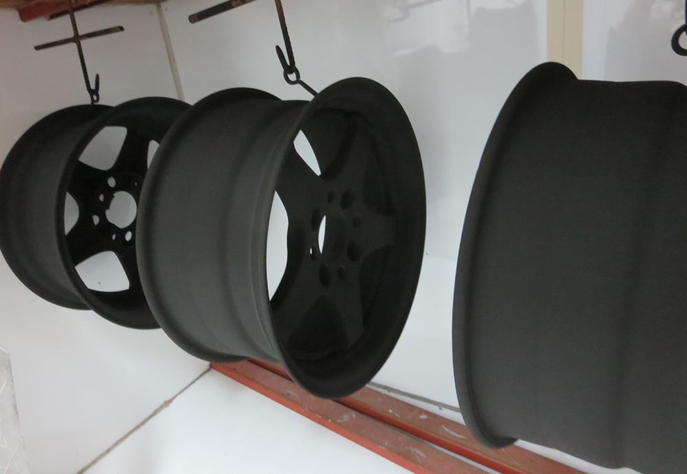 エアーバルブも個別にパウダーコートしてホイールのパウダーマットブラックのワンコートフィニッシュも発砲無く上手く行きました。