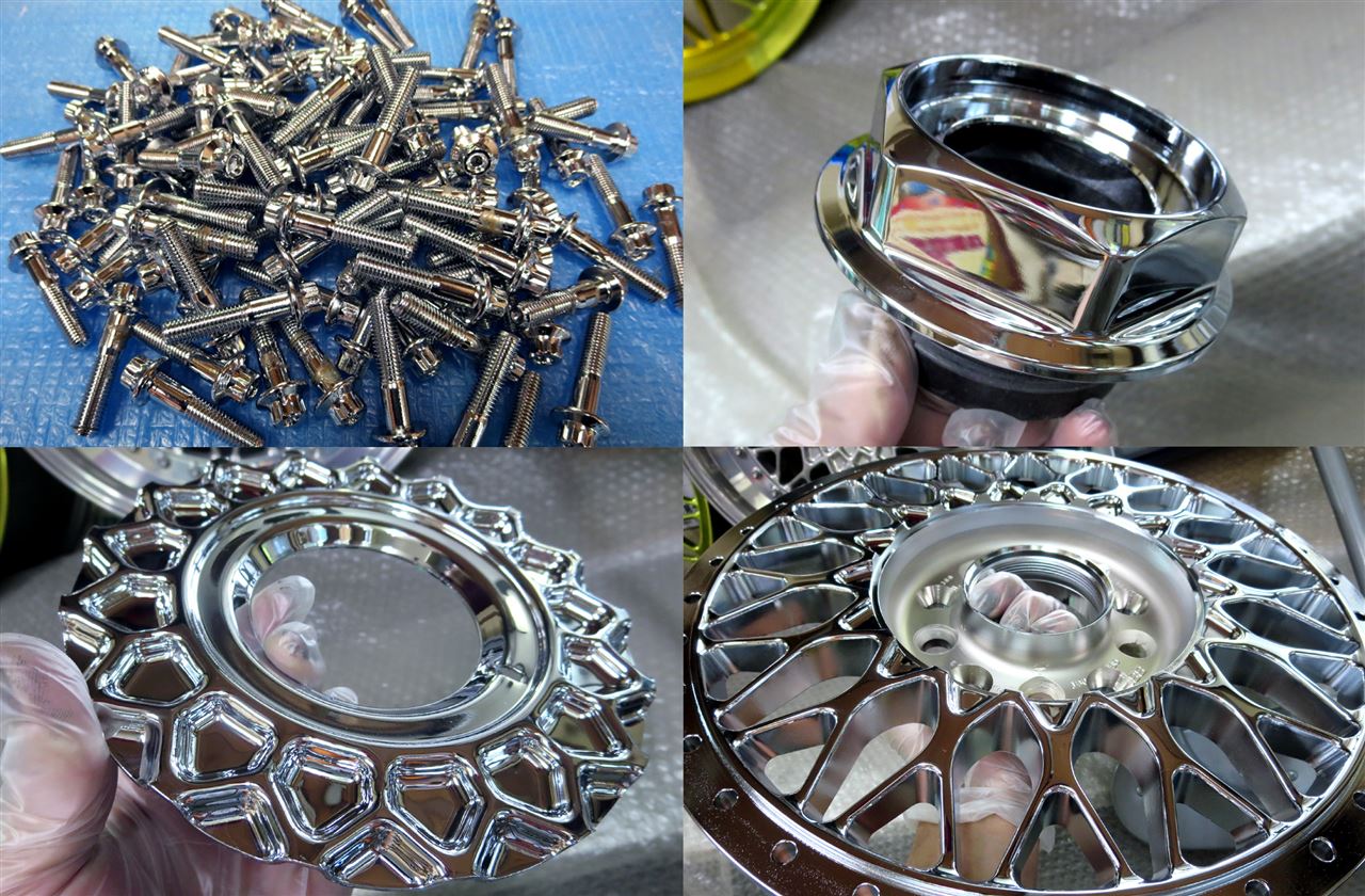 ピアスボルト・6角キャップ・メッシュプレート・センターディスクのクロームメッキ