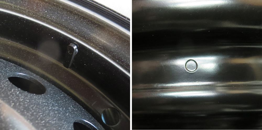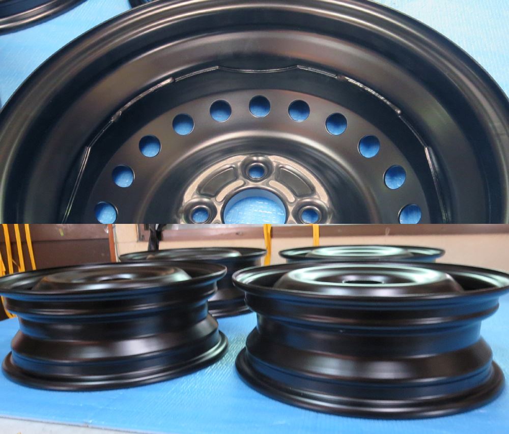 純正鉄チンホイールは剥げ易く錆び易いためパウダーコートや溶剤カラーとクリアーの塗装膜でコーティングする事により鉄錆び防止にも効果的です。