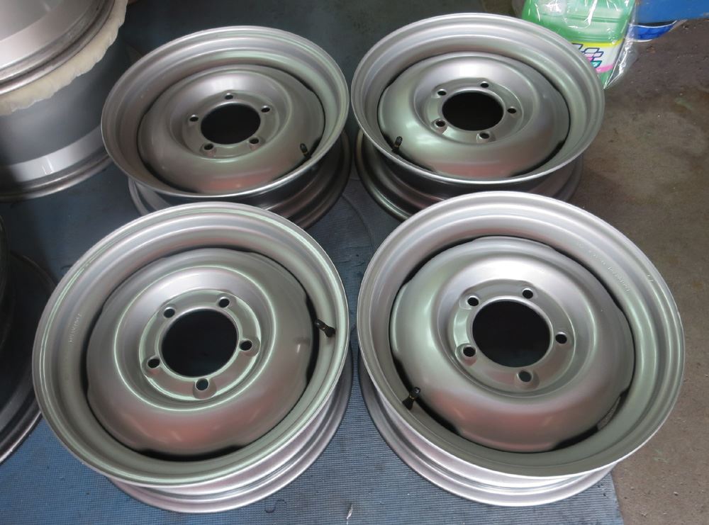 埼玉県のお客様・・・新品卸しですが鉄ホイールは痛みが早いためより耐久性の良い長持ちするパウダーコートで鉄肌をしっかりガードするのが今回の目的です。