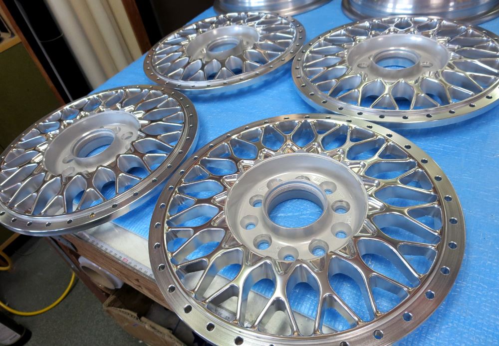 アウトリムはフランジ先端まで磨き込んでパウダーゴールドのピアスボルトを組んで合体完成です。