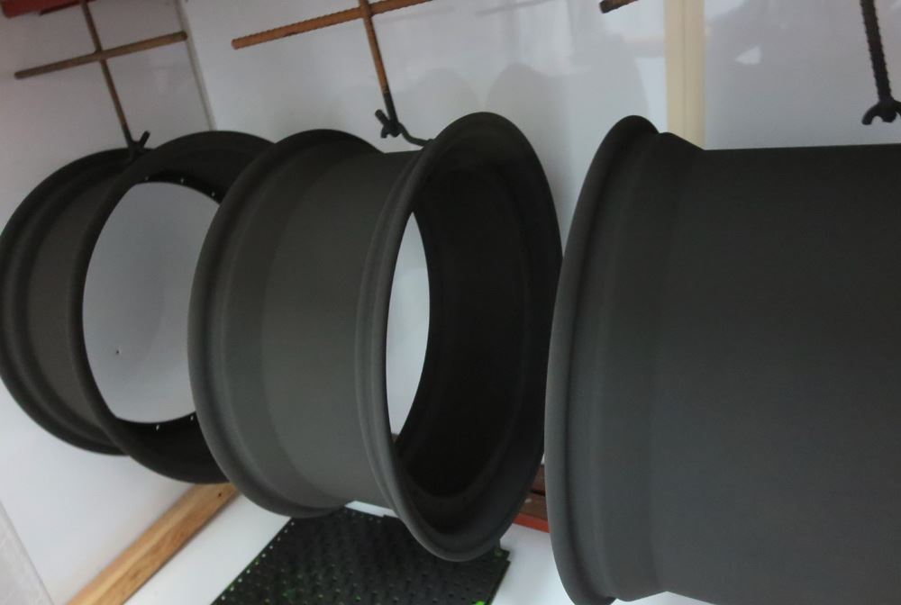 裏リムは普段汚れっぱなしでメンテ掃除が出来ませんので「頑丈肌で密着性が良く塗装が剥げにくい・熱に強いためパットカスが付きにくい・汚れ付着がしにくいため汚れ落ちが良い・黒は汚れが目立たない」などの利点からインリムへのパウダーワンコートフィニッシュを推奨する理由、目的です。