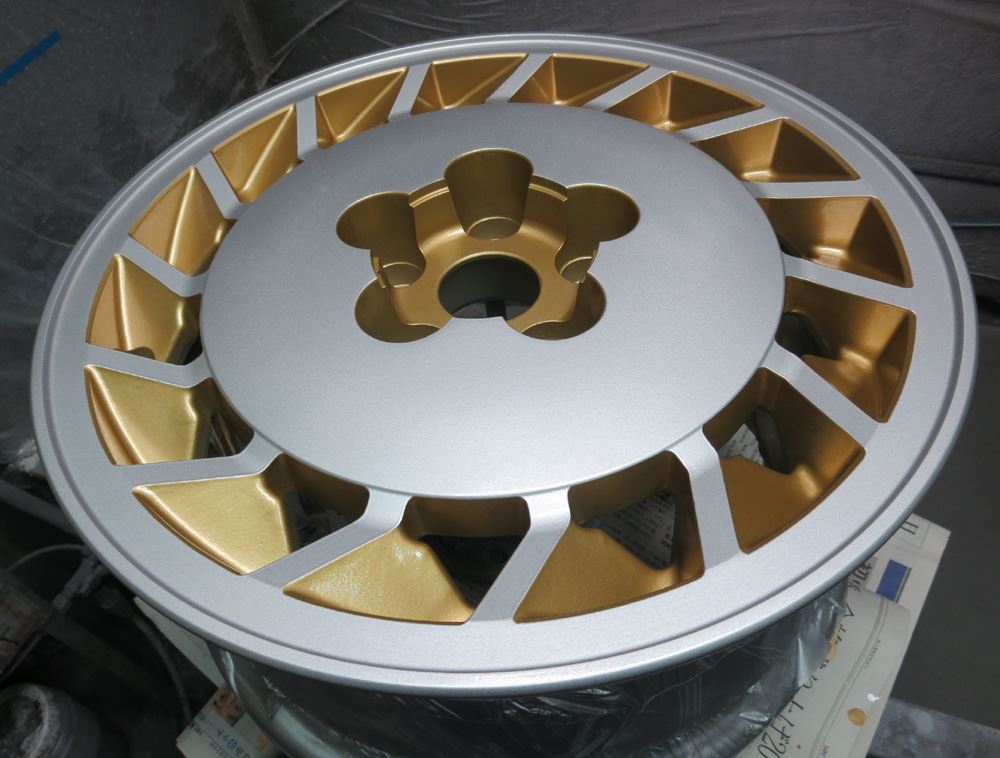 2コート目のパウダークリアーでシャンペンゴールドは艶を出しリムは艶をやや抑えたブラッシュドのパウダーコートになります。