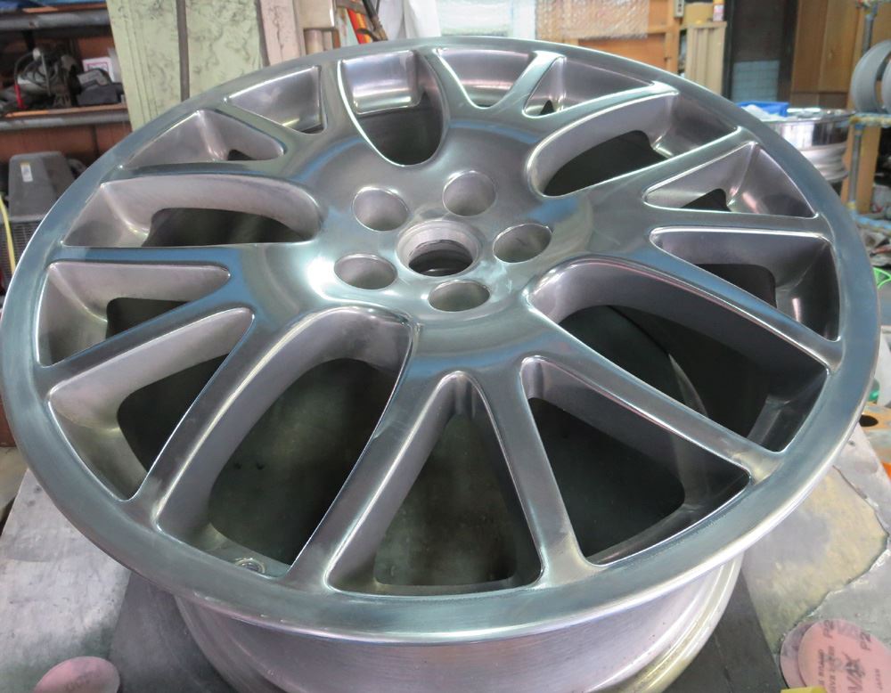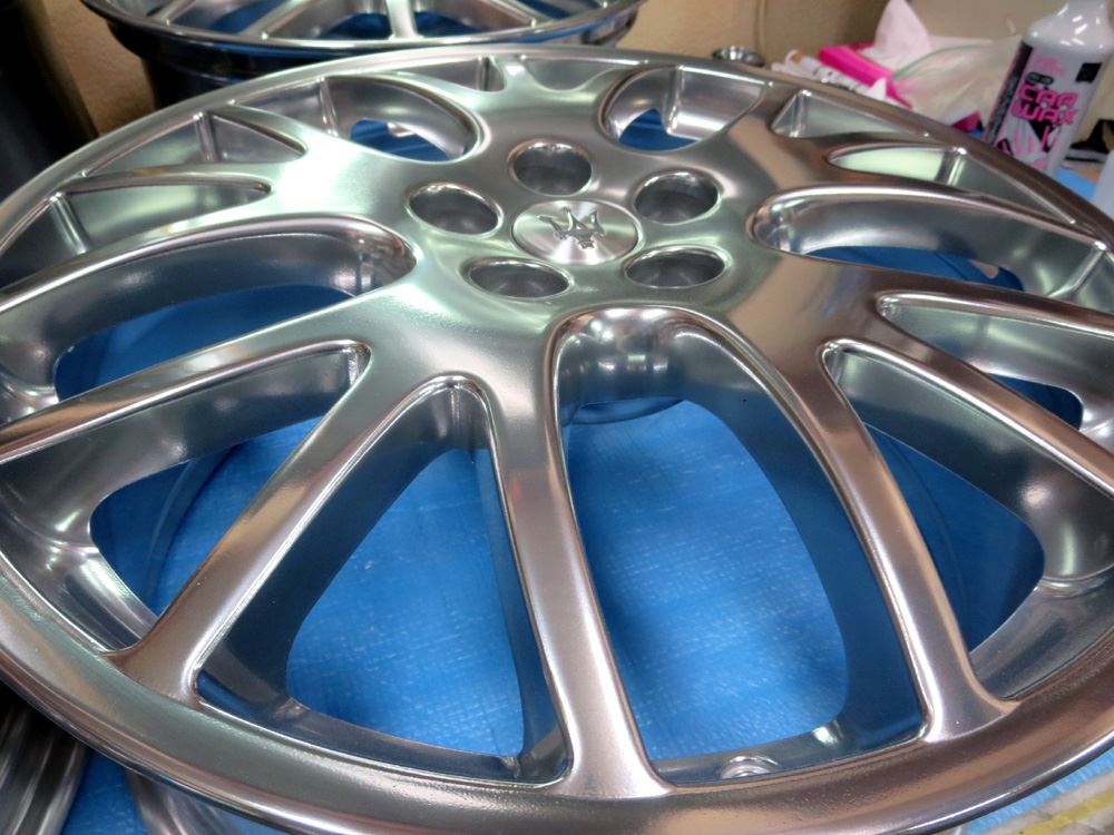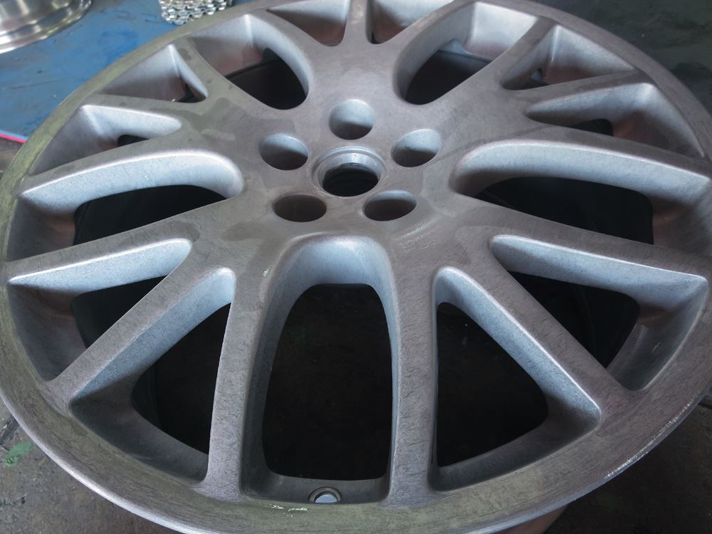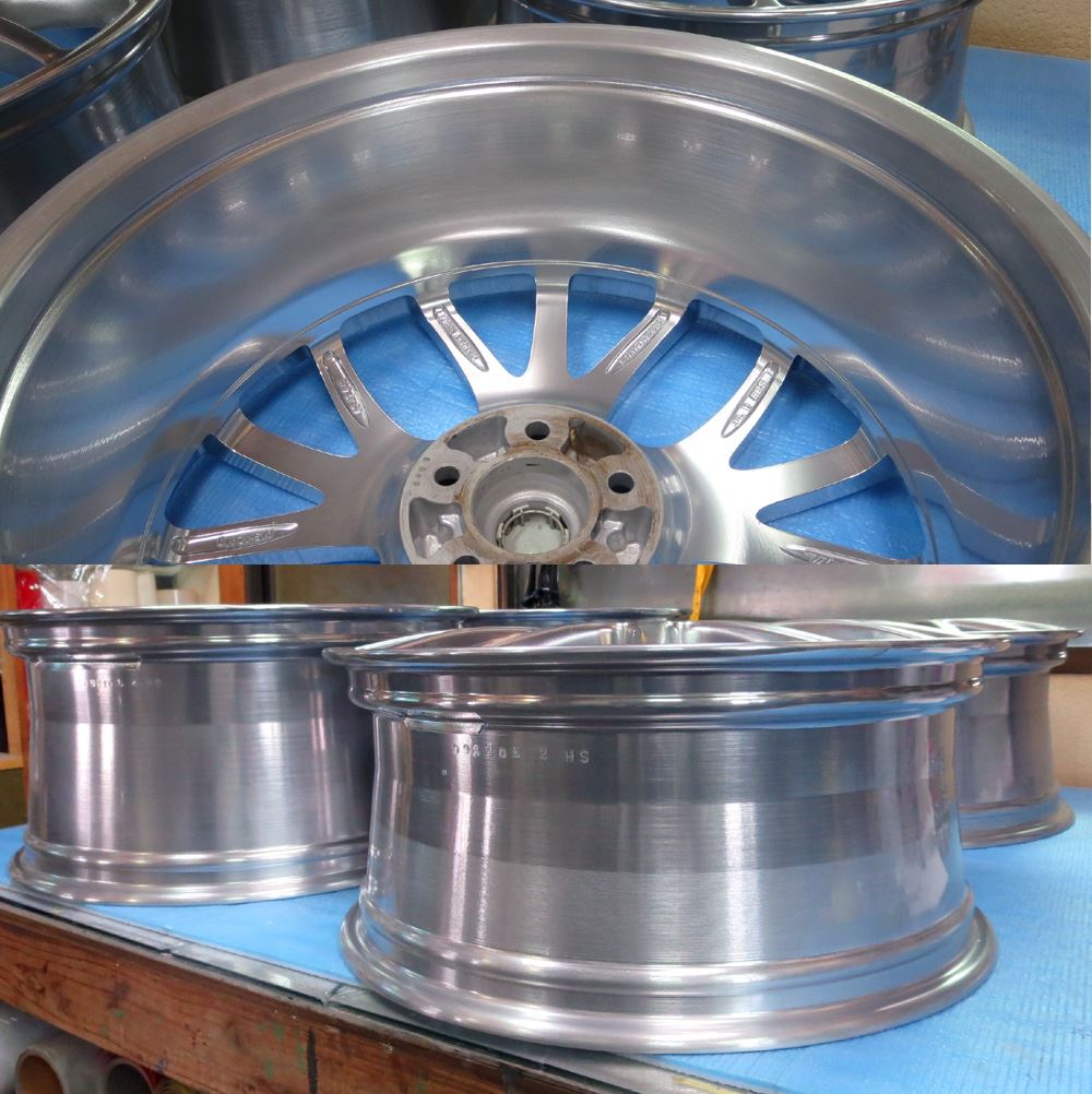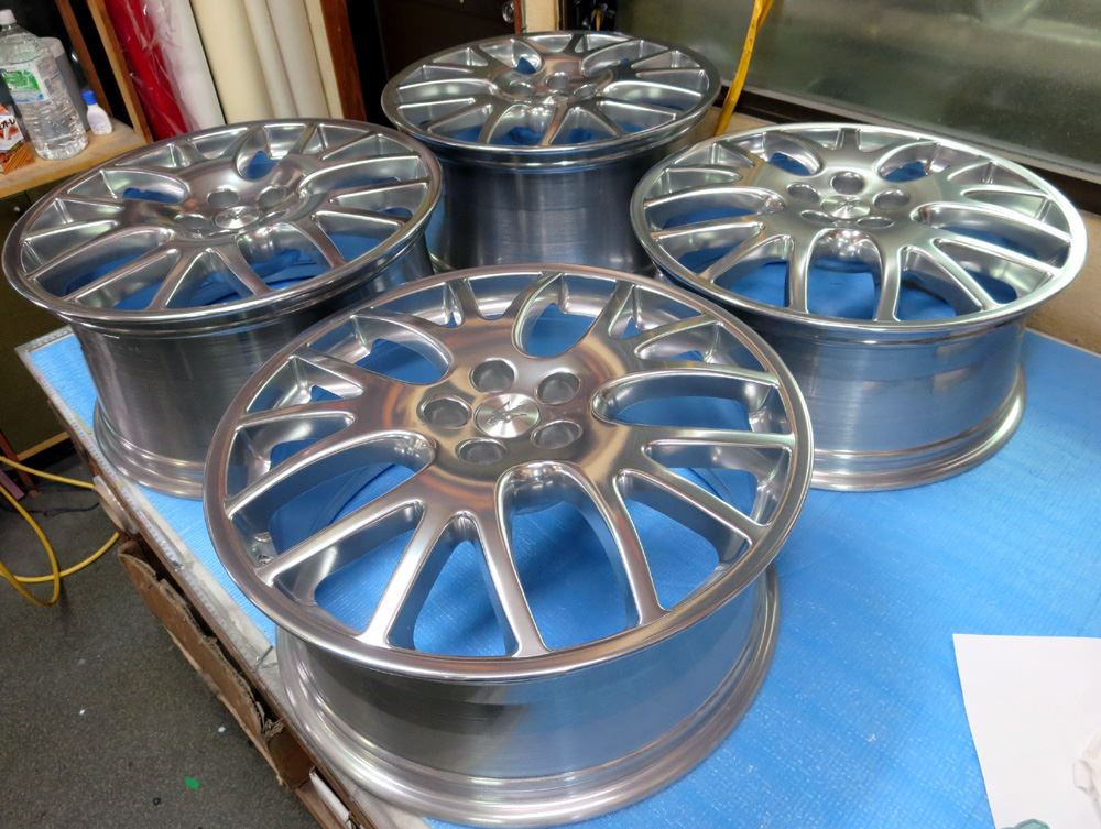 元々バレル研摩によるフルポリッシュホイールを塗装仕上げして有りましたので元のバレル3次元フルポリッシュに戻してパウダークリアーでポリッシュをコーティングガードします。
