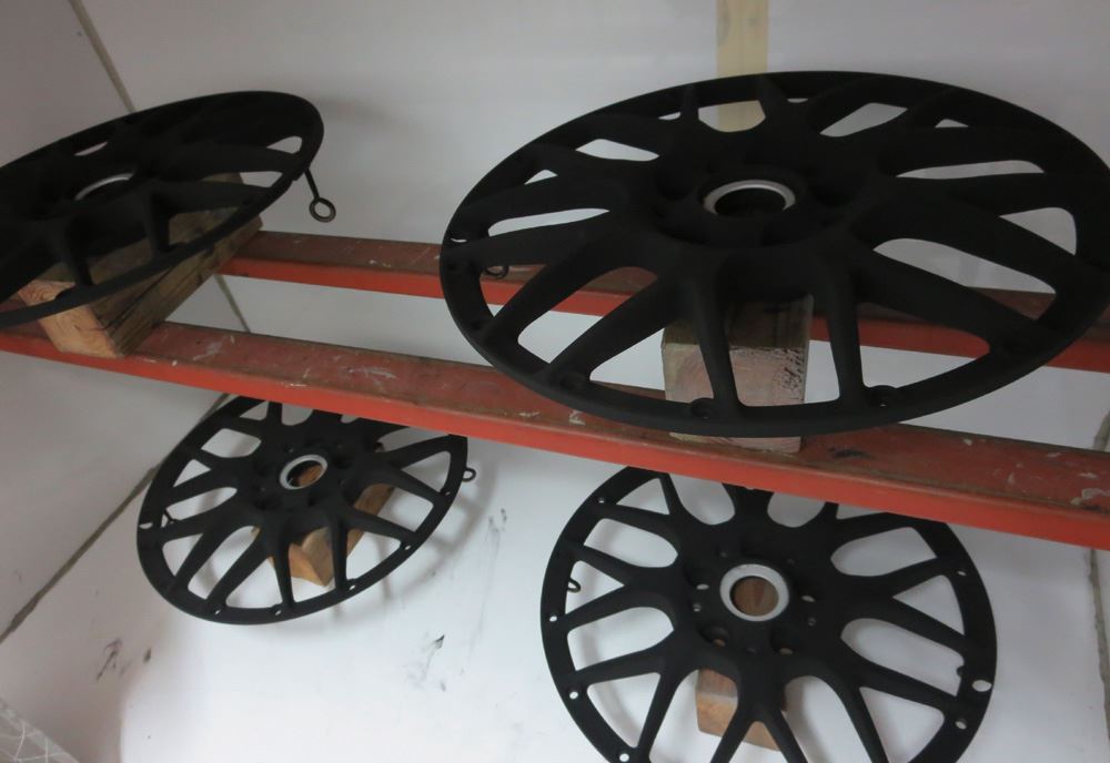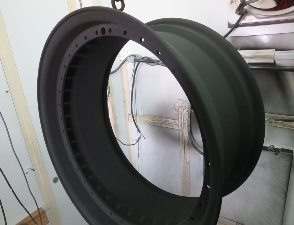 今や当社定番となったインリムへのパウダーグロスブラック静電噴射!