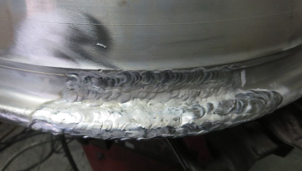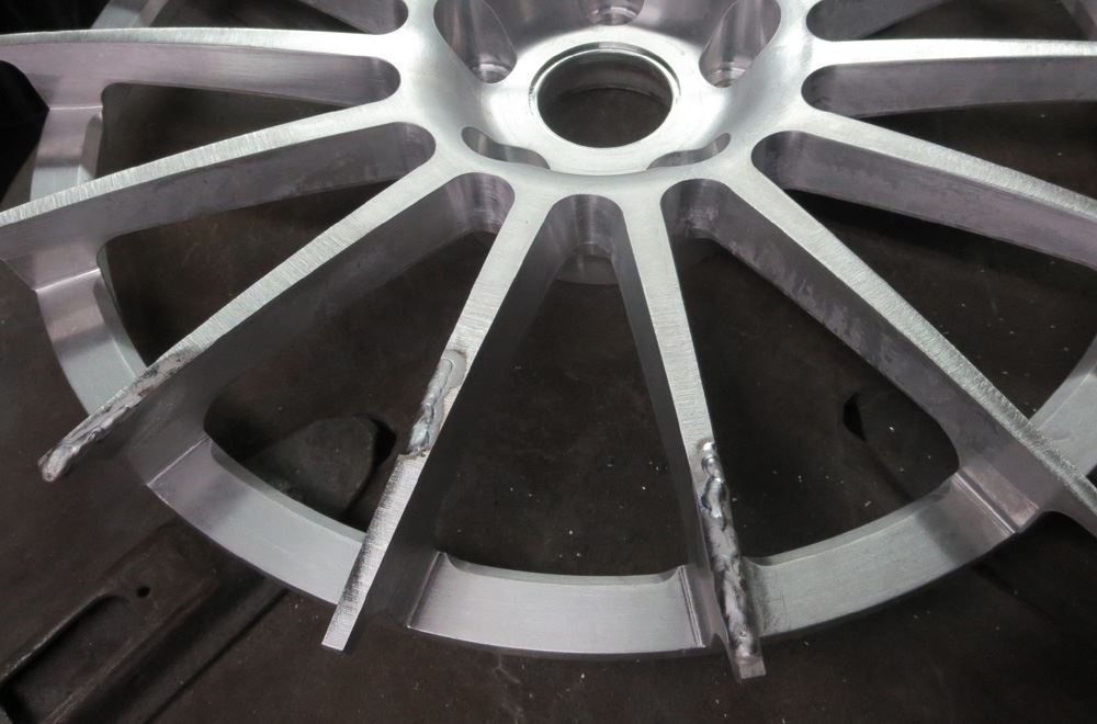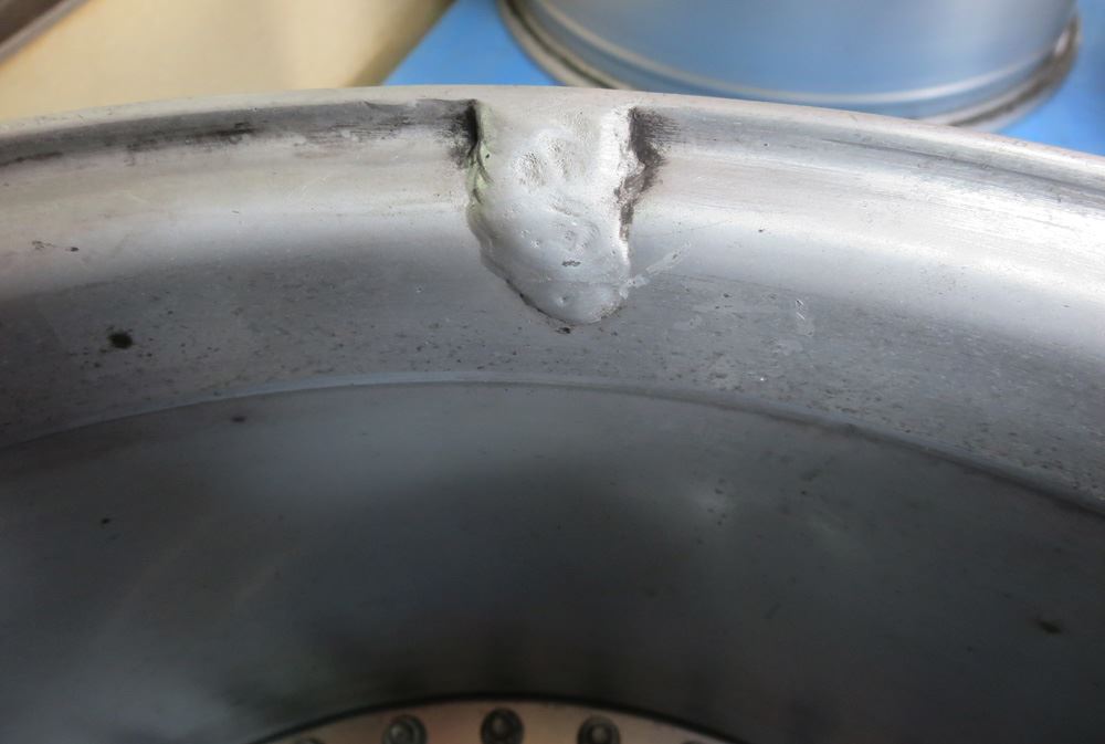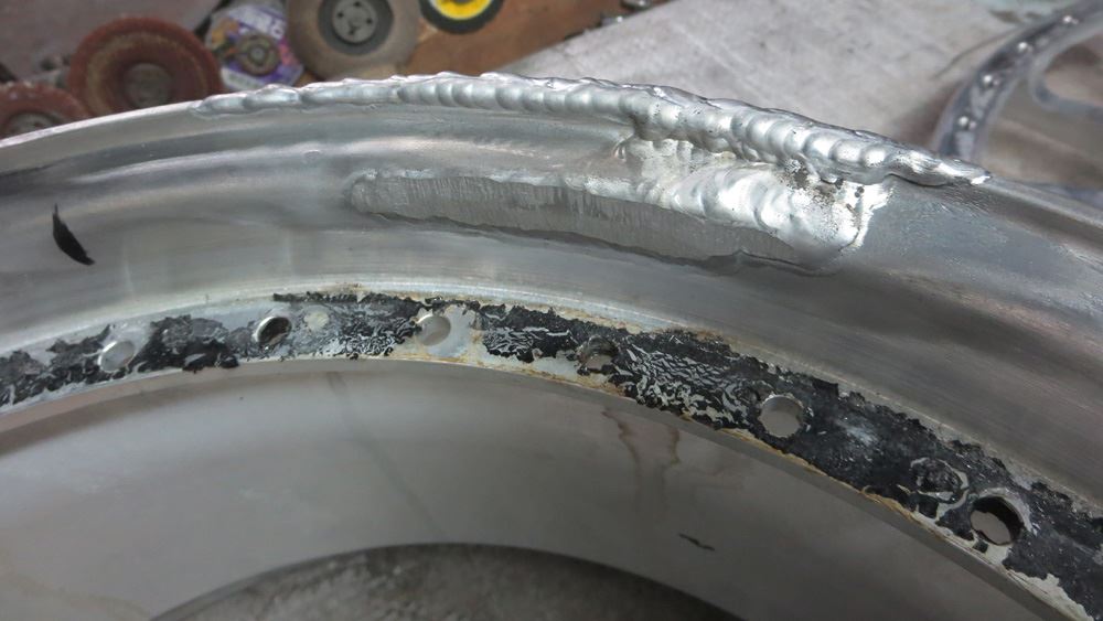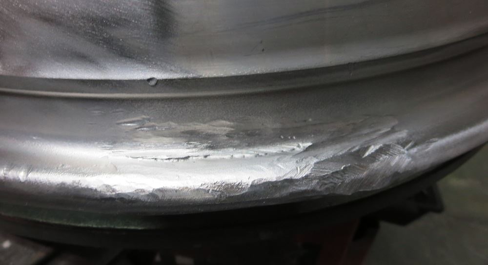 一部削り込んだ箇所はリムの高さを復元するため肉盛り溶接しますがリムサイド面まで削り込んで有りましたので天面からサイド面まで包み込むように肉盛り溶接