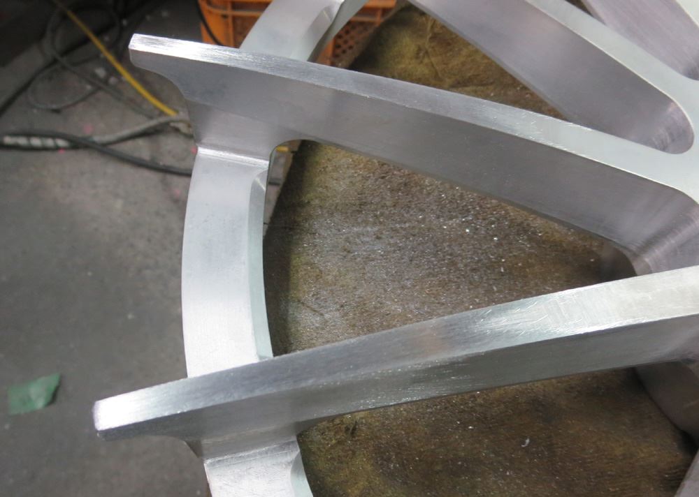 ※ブラッシュドは素地表現ですので形状が変わる削り込みやパテ埋めなど絶対に出来ませんので溶接修理からの原型復元が腕の見せ所でも有ります。
