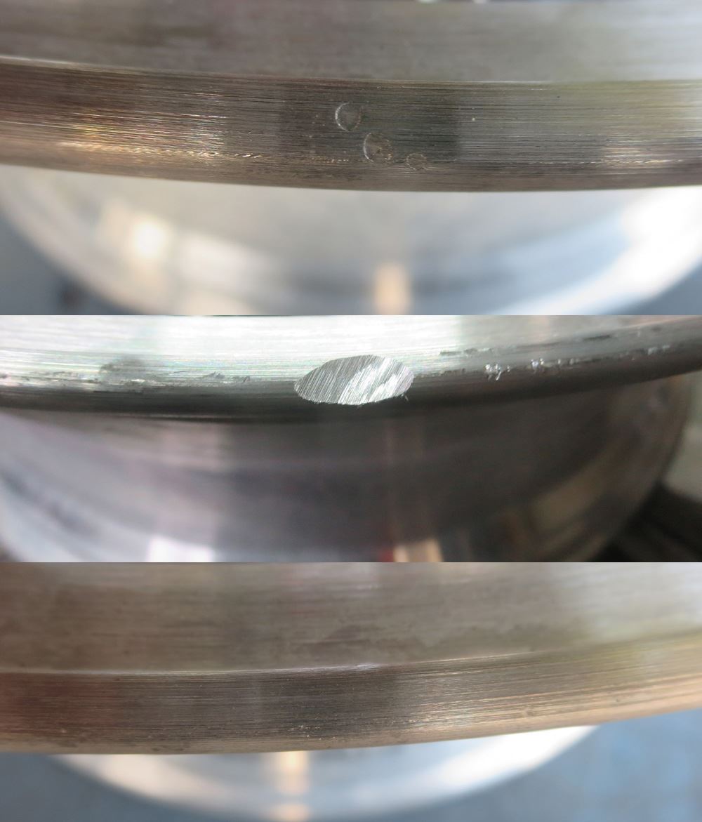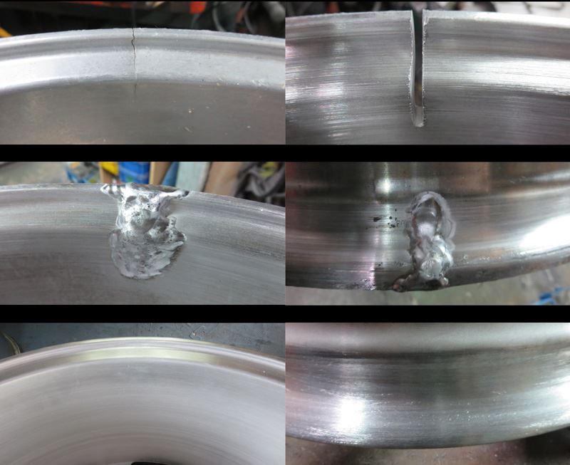 クラック修理はまず真円を出し開先取って適材、適温で表裏包み込み様に溶接してから表と裏を研磨研磨形成してどこを修理したのか解らない様に研磨修理するのが本来のクラック修理です。色塗って誤魔化せないポリッシュ修理などその証にもなります。