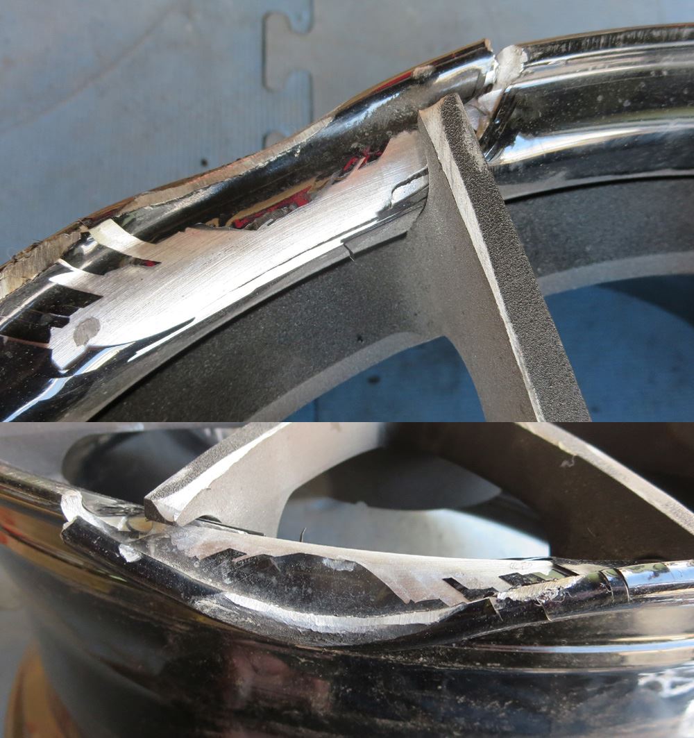 修理不能の交換したフロント側の社外リムです。
