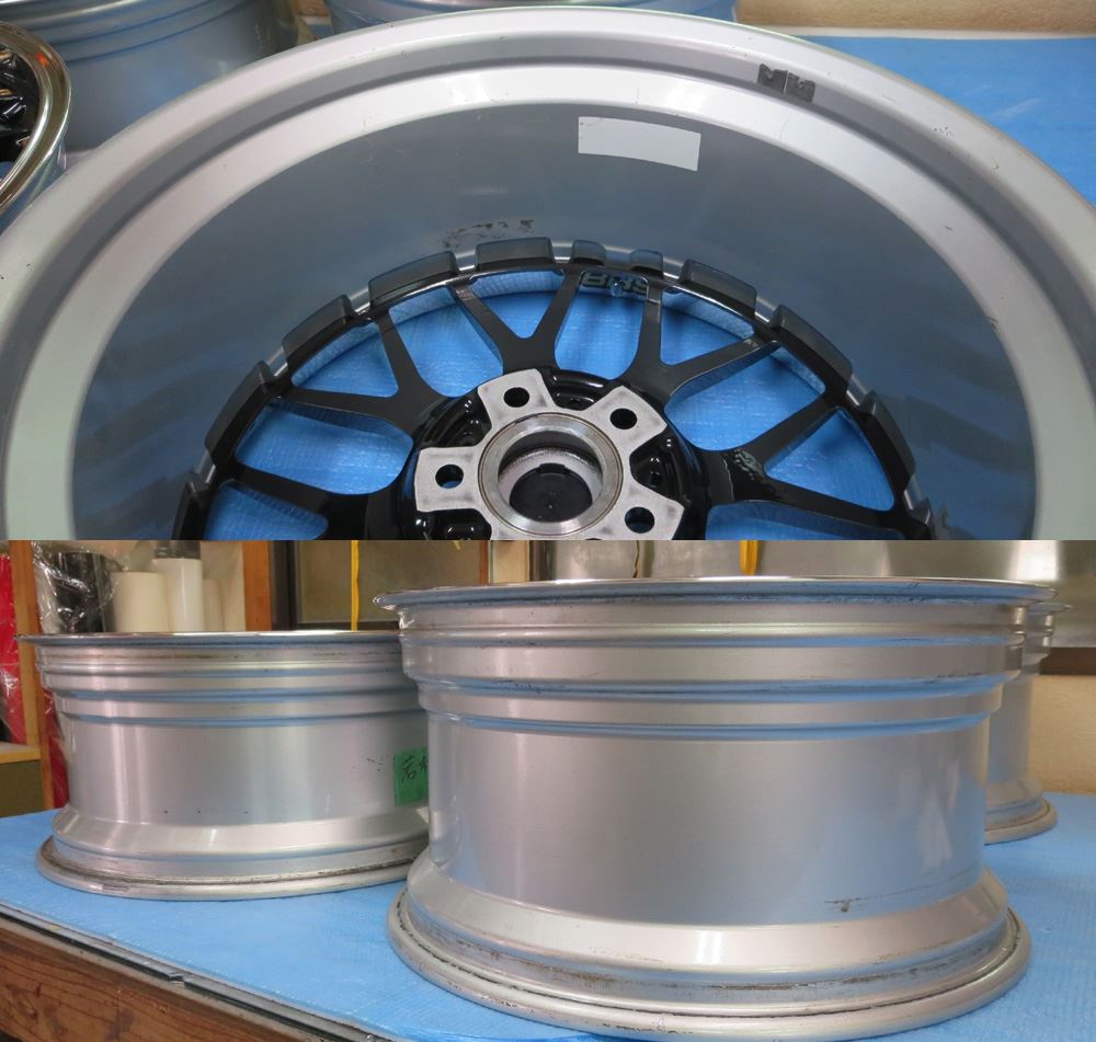 岡山県のお客様・・・以前BBS-RSを頂いたお得意様です。今回はクロームの腐食とガリ傷修理ついで再クロームより大幅ににコストが抑えられる今人気のブラッシュドに模様替えします。